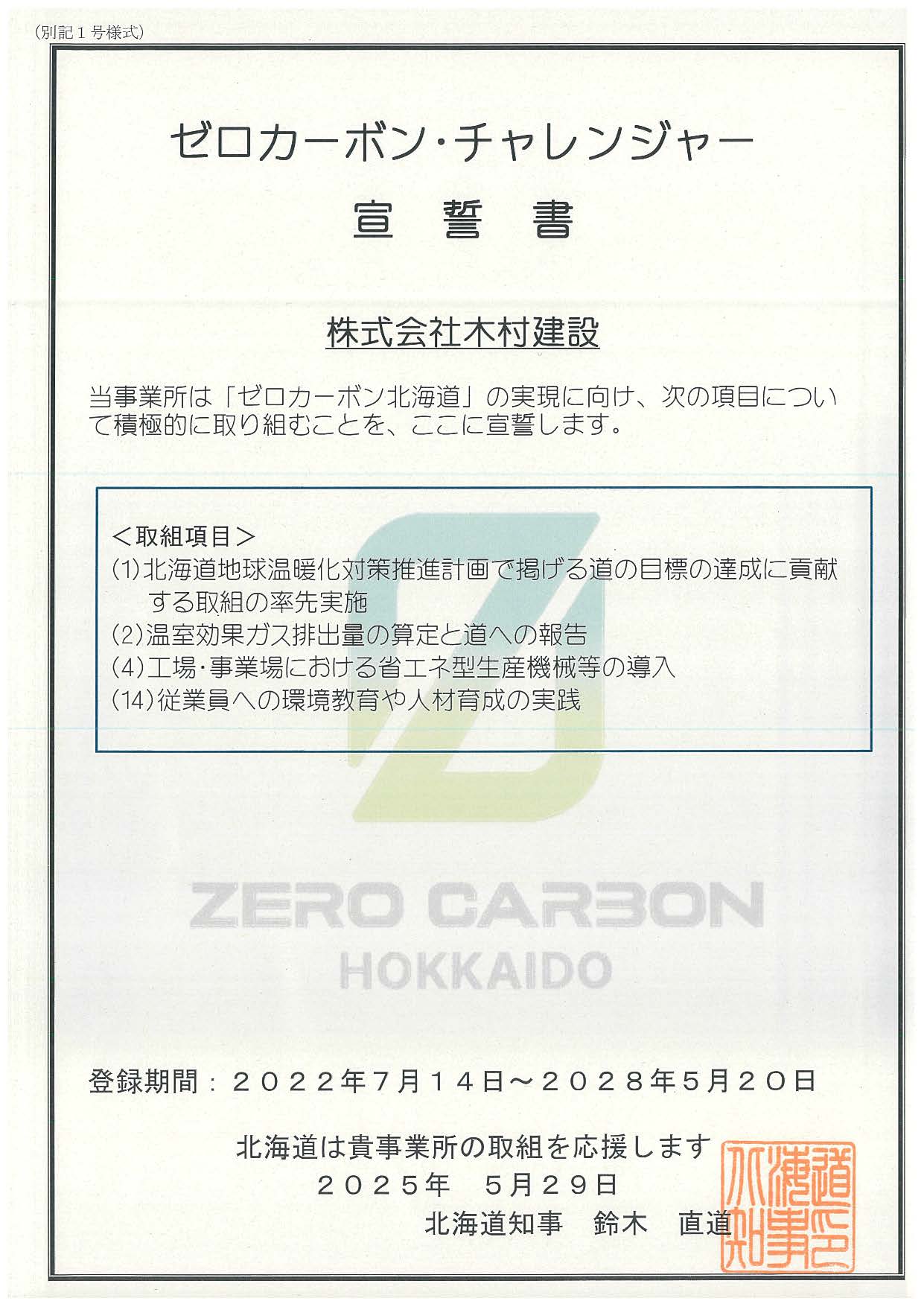 トップ コンテンツ ゼロカーボン・チャレンジャ―宣言 ゼロカーボン・チャレンジャ―宣言 令和4年6月当社、株式会社 木村建設はゼロカーボン・チャレンジャ―として「ゼロカーボン北海道」の取組むことを宣言します【令和7年6月に更新しました】